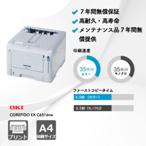 プリンターのみをラインナップしており、全体的な価格も複合機と比べて安価のため導入がしやすいです。また高い耐久性を誇るだけでなく、長期の無償保証によりメンテナンスコストが低く抑えられることも他社にはない強みとなっています。